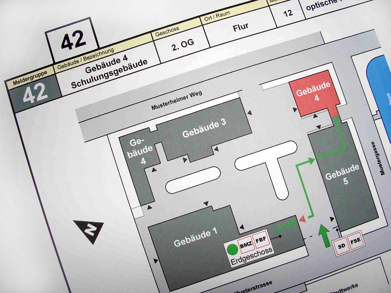 Unsere Feuerwehrlaufkarten sind übersichtlich, schnell erfassbar und leicht verständlich. Sie ermöglichen der Feuerwehr schnellstes Auffinden des ausgelösten Melders. Der Brandherd kann damit schnell und effektiv bekämpft werden. Die Laufkarten werden immer mit den Behörden und den zuständigen Feuerwehren abgestimmt und nach deren Vorgaben erstellt. Wir drucken im digitalen Druckverfahren, UV-stabil und wasserfest. Aus Stabilitätsgründen laminieren wir die Laufkarten mit 100-Micron-Laminat. Alle gängigen DIN-Formate sind möglich.