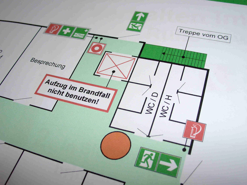 Flucht- und Rettungspläne (DIN 4844-3, BGV A8 und ASR A2.3)